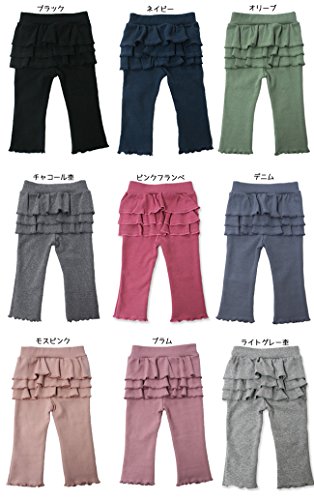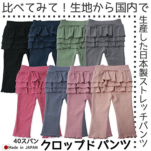 クロップド パンツ・おしり3段フリル 9分丈 ストレッチ パンツ (M(80-90cm), デニム)