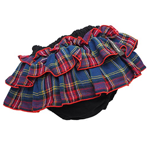日本製 ベビー ブルマ スカート Wフリル プラチナムベイビー【黒無地×Wガーゼ タータンチェック】 (ネイビー)