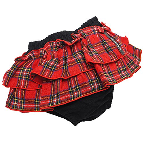 日本製 ベビー ブルマ スカート Wフリル プラチナムベイビー【黒無地×Wガーゼ タータンチェック】 (レッド)