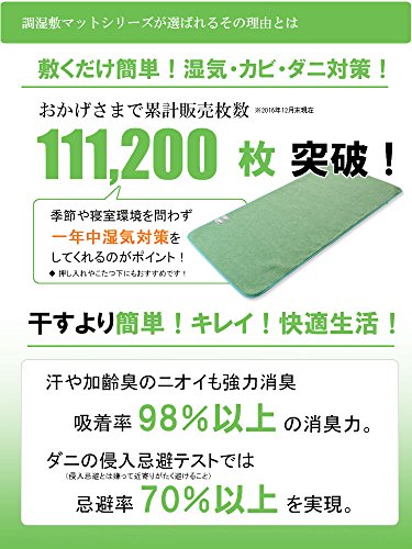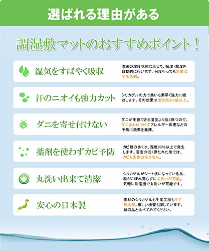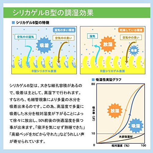 ・敷くだけ手人体に最適な湿度を保つように、周囲の湿度条件に合わせて調湿(吸湿・放湿)し、快適な湿度に調節します。汗や湿気、嫌なにおいを吸収し、ダニやカビの発生を防ぎますので、布団はいつもフカフカで、快適な睡眠をお届けします。