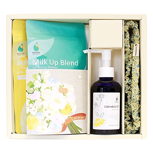 AMOMA 出産祝いギフトはぐくみセット (ハーブティー、カレンデュラオイル、授乳ストラップ)■男の子・女の子に贈る出産祝いプレゼントや贈り物に・無農薬・ノンカフェインのお茶