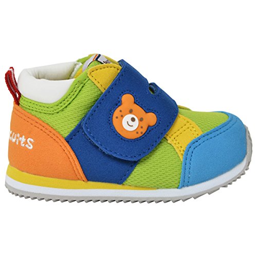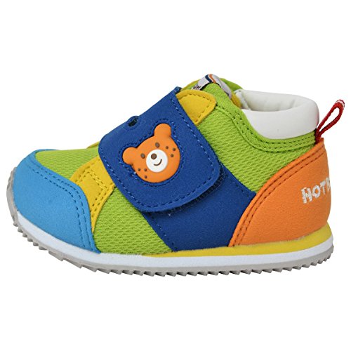 カラフルな色使いがとってもキュートな、スポーティーラインのセカンドシューズです! 甲ベルトの面ファスナーで調節して留められるので、甲高のお子様にもオススメ◎ 付け根のプラスチックのバックルが、大きく開いて戻らない仕様なので履きやすいですよ。 ゴム製のお顔マークが可愛いアクセントになっています。 またカップインソールがあることで、適度なクッション性とフィット感が生まれます。 取り外して洗うことも出来ますので、清潔感も保てますよ。 ポリエステルメッシュの素材感で、本格的なスポーティテイストを楽しめます! 機能性、デザイン性ともに充実したシューズは、走ったり飛んだり、 しっかりとした歩行ができるようになった足元をサポートするのにピッタリです ※面ファスナーとは、マジックテープのことです。(「マジックテープ」は(株)クラレの登録商標です。) ●セカンドシューズ仕様 ●フレックスソール ●2Eラスト設計 ●しっかりカウンター ●カップインソール 合成皮革 ポリエステルメッシュ (皮革部分)合成皮革 (底材の種類)合成底 中国