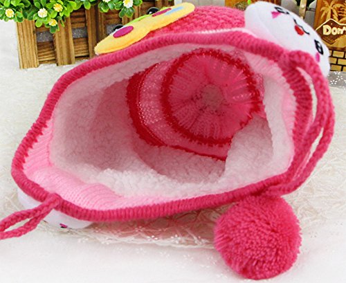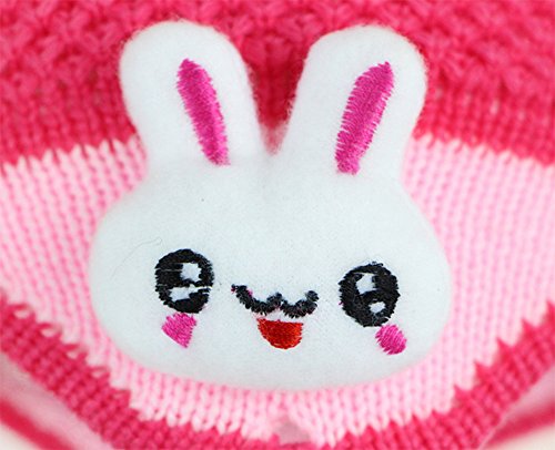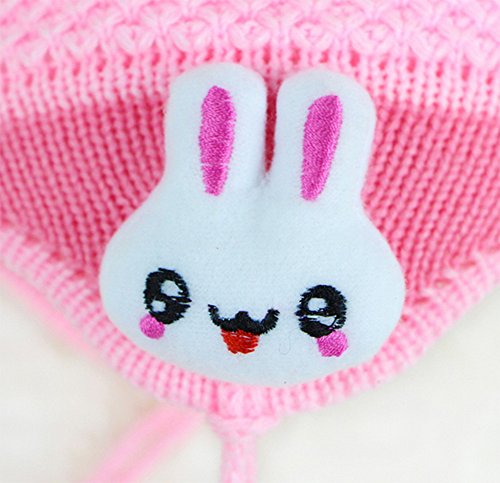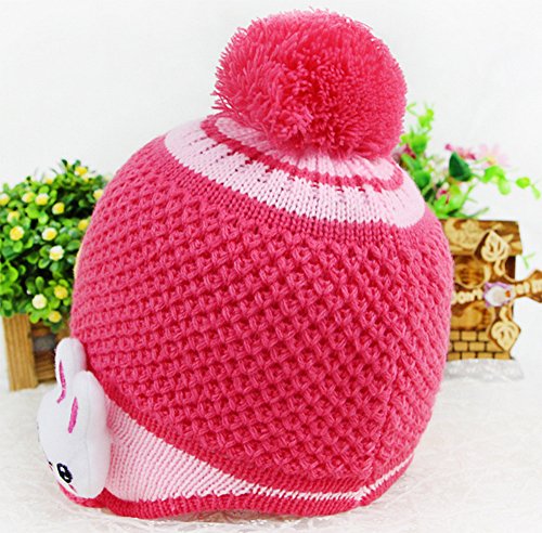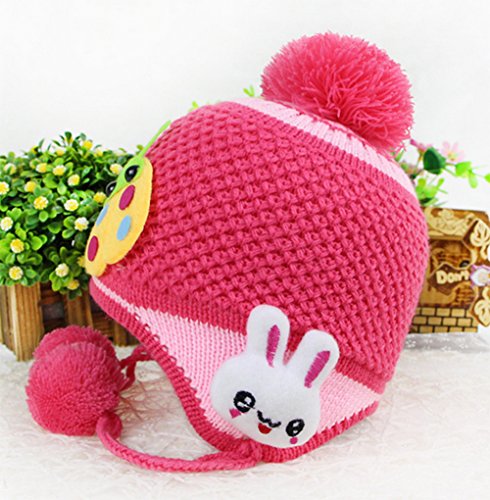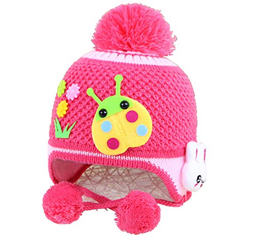 【Ludus Felix】ボンボン付き 耳あてニット帽 てんとう虫×うさぎ ウール ベビー キッズ 赤ちゃん 子供 (ピンクレッド)