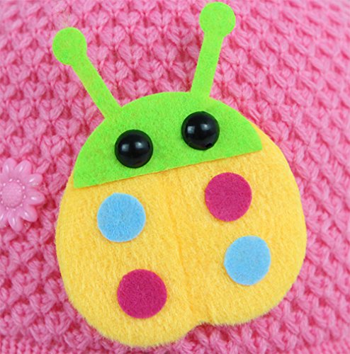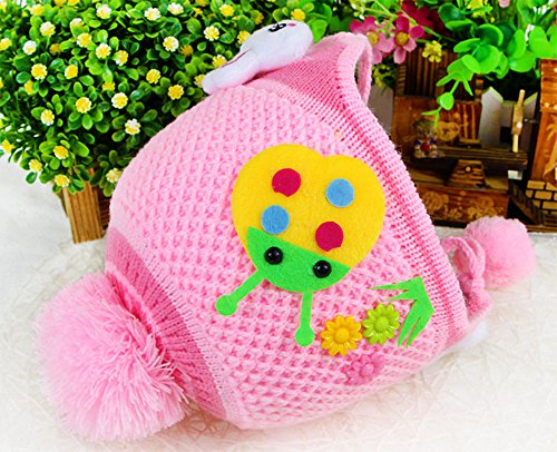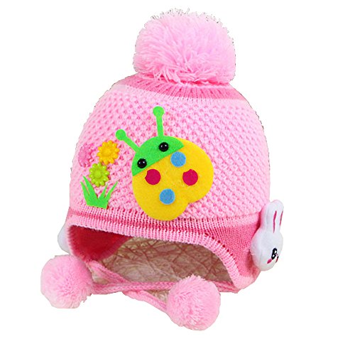 【Ludus Felix】ボンボン付き 耳あてニット帽 てんとう虫×うさぎ ウール ベビー キッズ 赤ちゃん 子供 (ピンク)
