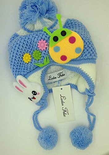 - てんとう虫とうさぎ柄が可愛い、ウール製の子供用ニット帽