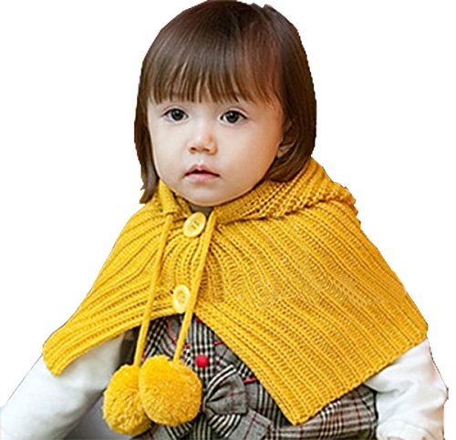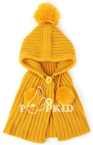 【Ludus Felix】 赤ずきんちゃん風 ニット帽 ニット帽子 ポンチョ ベビー & キッズ 子供 ボンボン付き 選べるカラー 5色 ケープ 一体型 マフラー ネックウォーマー フード 【肩&耳まであたたか】 (イエロー)