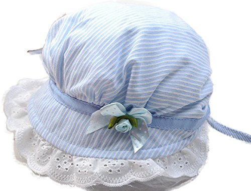 【LudusFelix】帽子 ベビー 子供 つば付き フリル付き ストライプ バラ UV 日よけ キッズ 全3色【紫外線からベビーを守る】【日本正規販売店】 (ブルー)