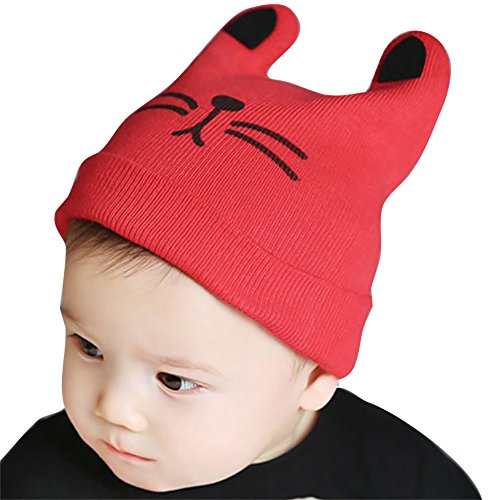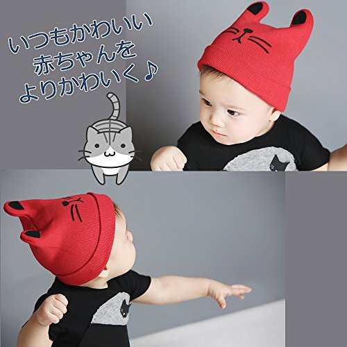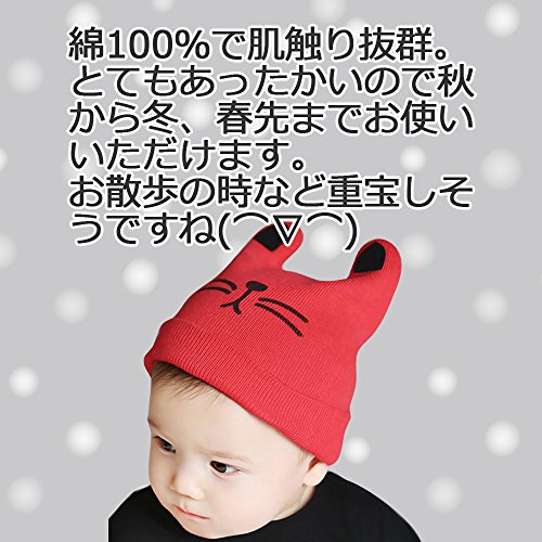 【LudusFelix】ネコ風 ベビー ニット帽 ニット帽子 猫 赤ちゃん 男の子 女の子 子供 全4色 (レッド)