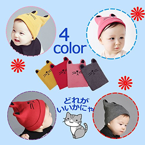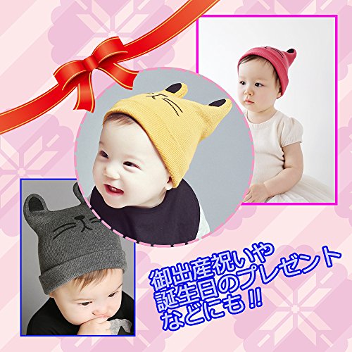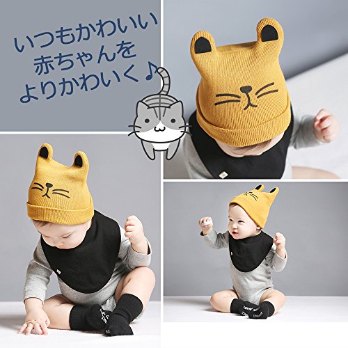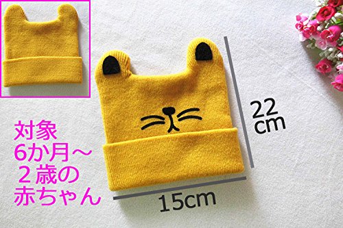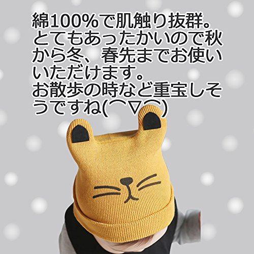 【LudusFelix】ネコ風 ベビー ニット帽 ニット帽子 猫 赤ちゃん 男の子 女の子 子供 全4色 (ウコン)
