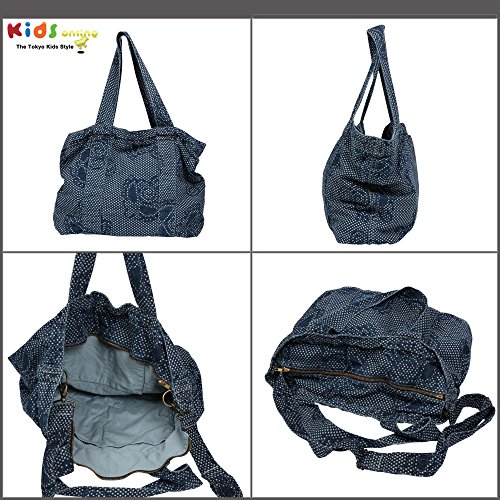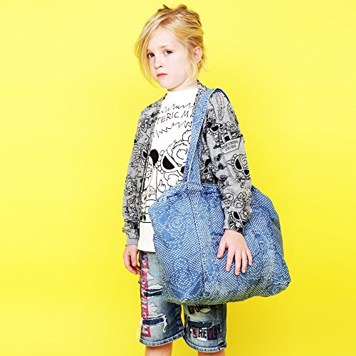タテ糸にロープ染色によるインディゴ糸を使用した定番のライトオンスデニムを、独自の技術で抜染することで総柄を表現したデニム素材を使用した2wayマザーズバッグです。繊細な柄をインディゴ抜染することは非常に難しく、職人技が光る珠玉の素材といえます。小さな星柄でMINI FACEを表現した細かなグラフィックでさりげなくヒスミニをアピール。トートバッグとして、ショルダーバッグとしても使えるので用途に合わせて使い分けてね。