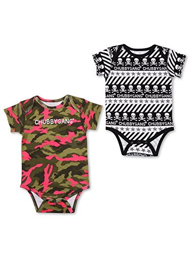(チャビーギャング) CHUBBYGANG 総柄ダルマロンパースSET 70cm カモフラxスカル