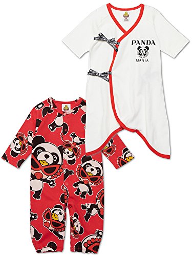 PANDAMANIA総柄の2WAYオールとコンビ肌着のセット。先シーズン大好評だったPANDAMANIAが総柄になってインパクト大!!肌着では、バックプリントにも注目してね。パイピング使いやオリジナルテープを使用したリボンもオシャレポイントに。新生児時期から着用できる肌着と立っちする頃まで活躍する2WAYオールは、赤ちゃんの必需品だから、ギフトとしてもおすすめです★