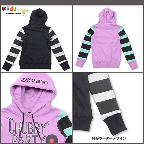 (チャビーギャング) CHUBBYGANG 袖ボーダーキャニオン裏毛パーカー 110cm クロx杢グレー