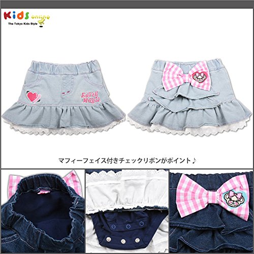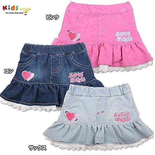 (アースマジック) EARTHMAGIC チェックリボン付デニムスカート 130cm コン