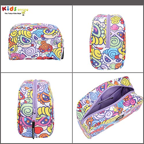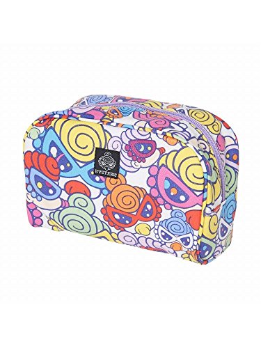 SUPER POP総柄で小物もアピール!ラウンド型のポーチは側面までファスナー開きするので出し入れしやすく便利。表はPVC加工しているので、汚れが付きにくくなっています。タテ糸に20番手の糸を2本引き揃え、ヨコ糸に16番手の糸を1本打ち込んだコットンオックス組織素材です。適度な密度と強度、美しい織目で通気性もありシワになりにくく、その繊細な織目は細かなグラフィックも鮮明に美しく表現できます。