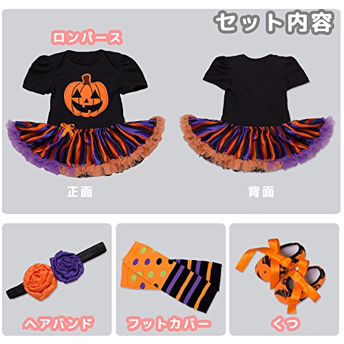- 女の子のハロウィン衣装4点セットです。【セット内容】ロンパース・ヘアバンド・アームカバー・シューズ