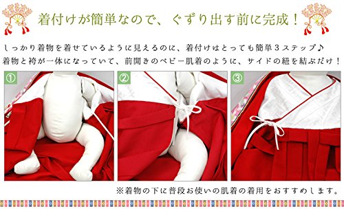 着物と袴が一体になっていて、前開きのベビー肌着のように、サイドの紐を結ぶだけです。