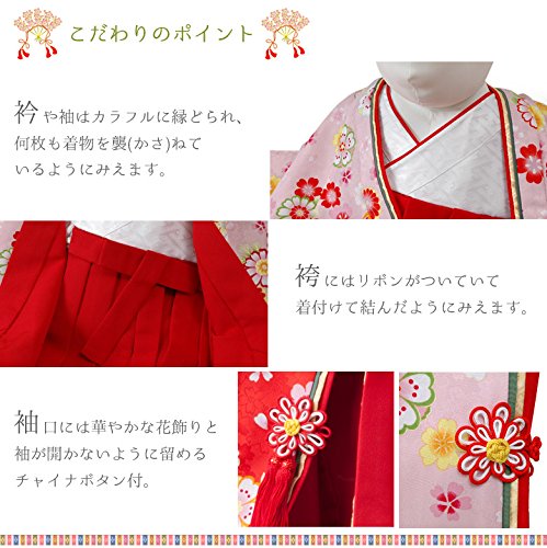 - 【1才~2才】目安の身長:80cm前後/着物丈:65cm/裄丈:45cm/袖丈:35cm/袴丈:42cm