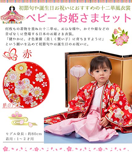 女の子ベビー着物 十二単風衣裳 お姫さま ピンク 100日(3ヶ月)-1才(60cm前後) 一体型 中国製