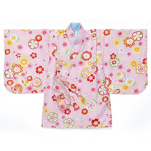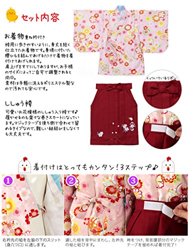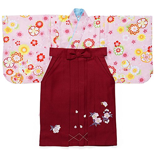 女児着物袴セット ピンク/エンジ刺繍 1-2才 中国製