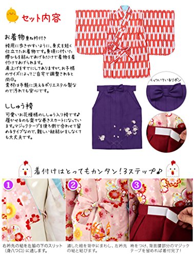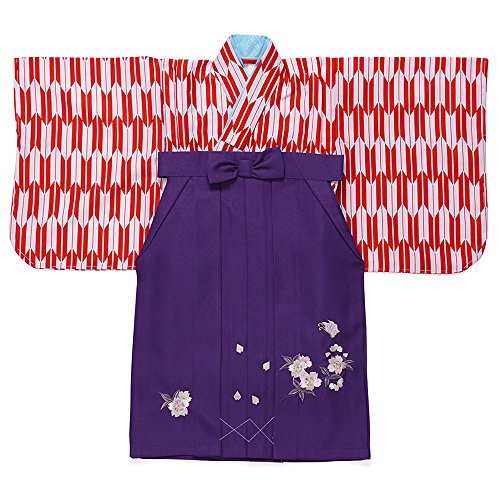 女児着物袴セット 赤矢絣/紫刺繍 100日-1才 中国製