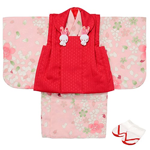 女の子ベビー被布セット 和風靴下付き 1才(80cm前後) 桜ピンク 訳アリ