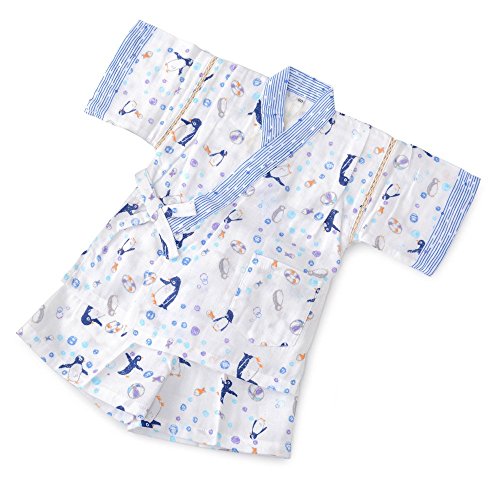 ベビー男の子 ガーゼ甚平 ペンギン 水色 90cm