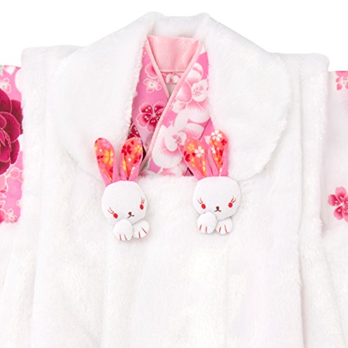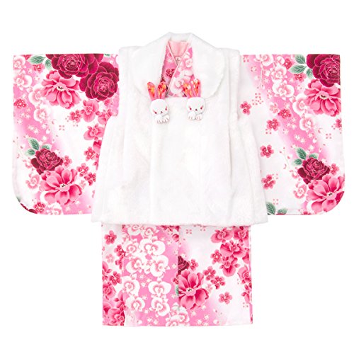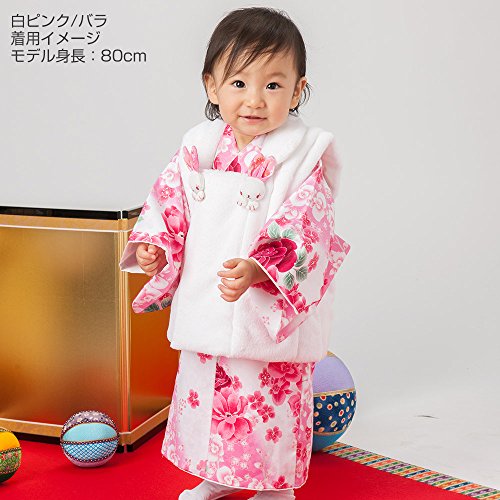 女の子ベビー着物 ボア被布セット ポリエステル 白ピンク/バラ 1才(80cm-90cm) 中国製