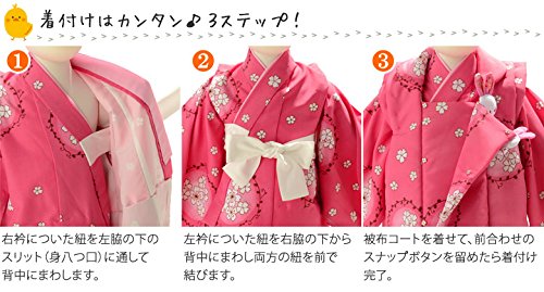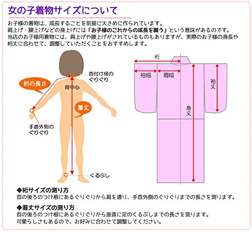 - 目安の身長:80cm前後 ≪着物≫ 身丈:58cm(上げ前:69cm) / 裄丈:36cm (上げ前:41cm) ≪被布コート≫被布コート丈:約36cm ※若干のサイズ差がある場合があります。