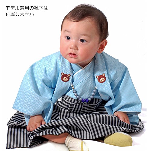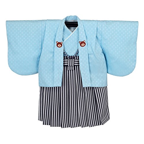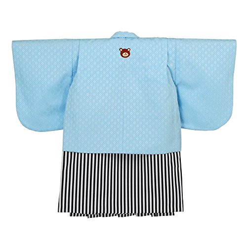 男の子ベビー着物セット 羽織袴 100日-1才(60-70cm) くま紋 水色