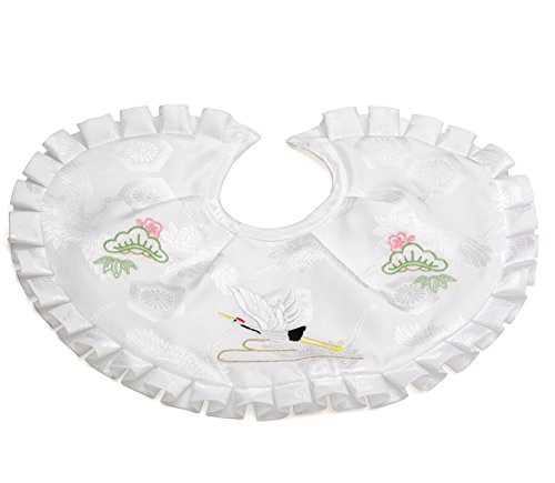 お宮参り よだれかけ 鶴刺繍 ワンタッチワイヤー型 ポリエステル 白