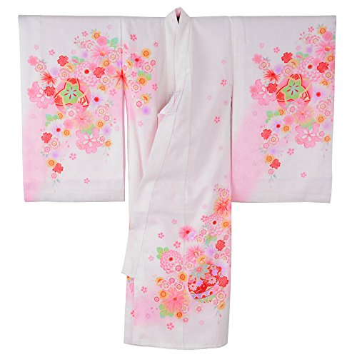 女の子初着 お宮参り着物 ポリエステル 白地 鞠に桜