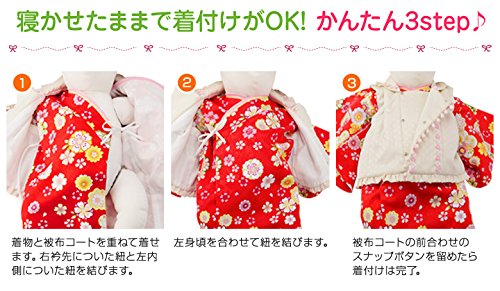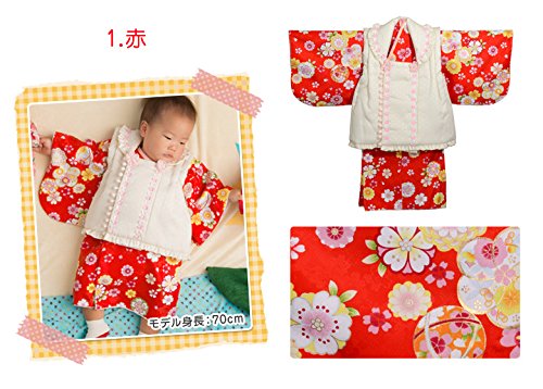 女の子ベビー被布着物セット 赤 100日 70cm 80cm 中国製