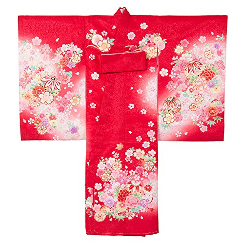 女の子初着 お宮参り着物 ポリエステル 赤 鞠にしだれ桜