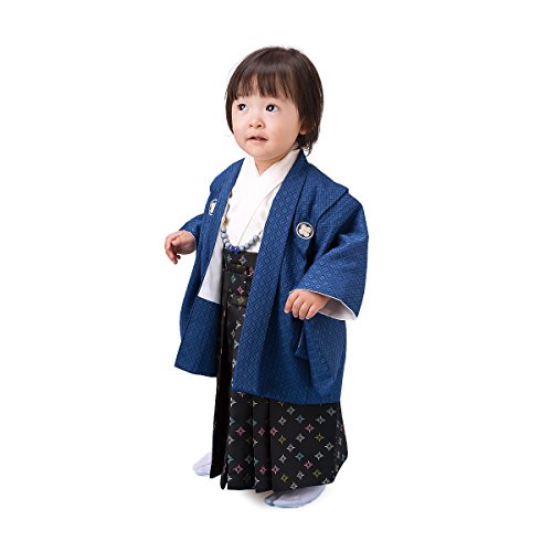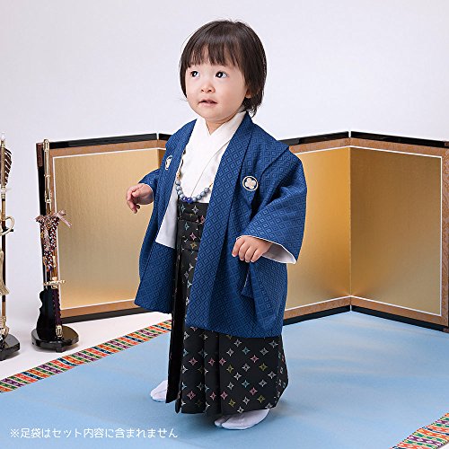 男の子ベビー着物セット 羽織袴 1才(80cm前後) 群青・オフ白