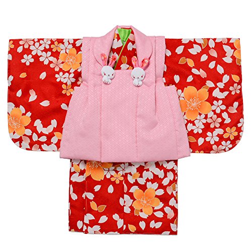 女の子ベビー被布着物セット 1才 桜 赤