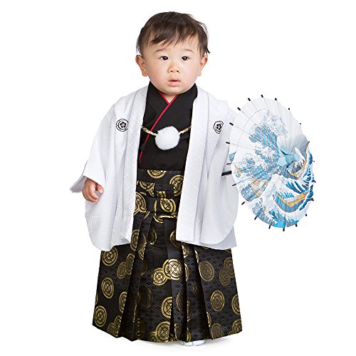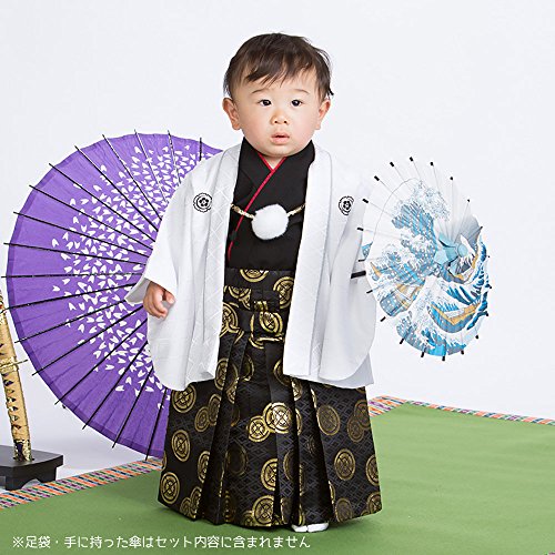 男の子ベビー着物セット 羽織袴 1才(80cm前後) 白七宝・黒