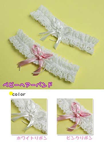 - レースとリボンの飾りが可愛らしいベビー用のヘアーバンド。
