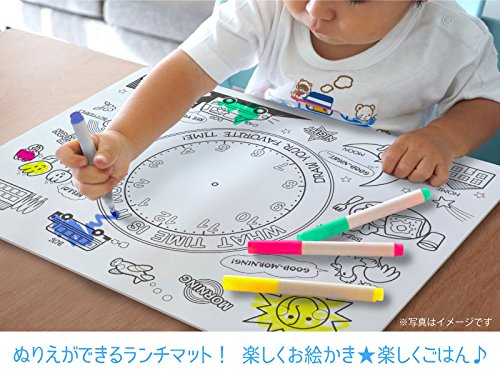 ・サイズ :40.2×30.2cm ・お食事タイムをさらに楽しく!ぬりえをしながら英語も学べるマットです。 ・汚れが落ちやすく清潔に保てます。 ・食器洗い・乾燥機使用可能。 ・耐熱温度200℃、耐冷温度-30℃。 ・国際認証機関SGSの食品接触安全テストを通った安全性の高いシリコンです。 ・やわらかいシリコン製ですのでコンパクトに収納できます。 ・ペン4色付属。