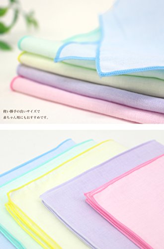 Fluffy(フラフィ) 中判カラー 二重合 ガーゼハンカチ グリーン 10枚セット 日本製 綿100% 無地 35×35cm