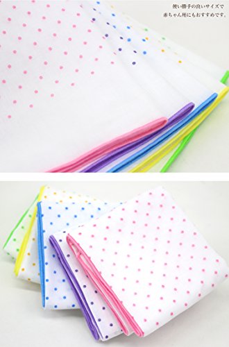 Fluffy(フラフィ) 中判水玉 二重合 ガーゼハンカチ ピンク 10枚セット 日本製 綿100% 水玉 35×35cm