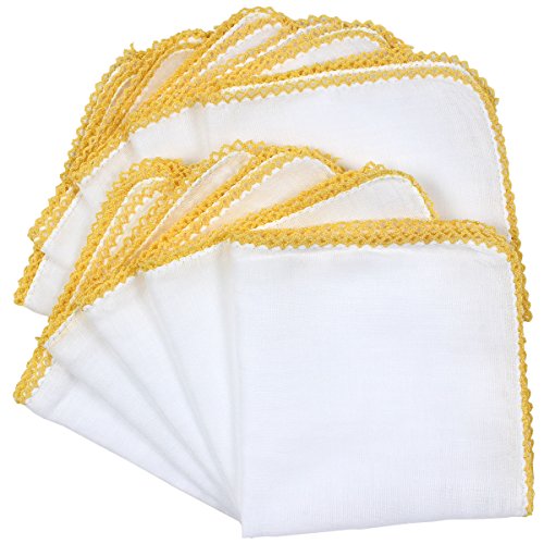 Fluffy(フラフィ) ピコレース 二重合 ガーゼハンカチ イエロー 10枚セット 日本製 綿100% 無地 33×33cm