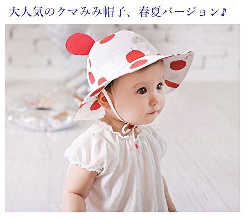 LOTUS LIFE ベビー ハット 帽子 uvカット あご紐 コットン 赤ちゃん 男の子 女の子 両用 ドット うさぎ (赤)