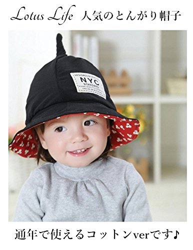 LOTUS LIFE かわいすぎる とんがり 帽子 キッズ こども コットン 男の子 女の子 両用 50cm NYC (ブラック)
