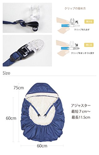 【注意事項】 ・クリップホールは1歳ごろまでを目安にお使いください。 ケープからお子様の頭が出るようになりましたらご使用を控えてください。 無理にクリップホールを使用しますと破損の原因となります。 ・ドライクリーニングはお避け下さい。 ・はっ水加工(表側のみ)は繰り返しの使用・洗濯により効果が低下します。 市販の防水スプレーをお使いいただくと効果的です。 ・中性洗剤で手洗いしてください。 ・直射日光を避け陰干ししてください。 ・塩素系漂白剤は使用しないでください。 ・タンブラー乾燥はお避け下さい。 ・ベビーカーのご使用時は車輪にケープが巻き込まれないよう注意してください。 ・抱っこ、おんぶでご使用の際はかならず抱っこ紐を装着し、ケープ単独でのご使用はしないで下さい。