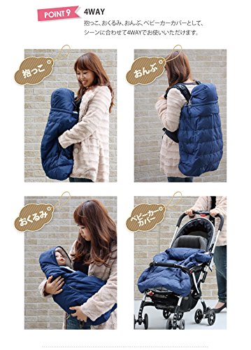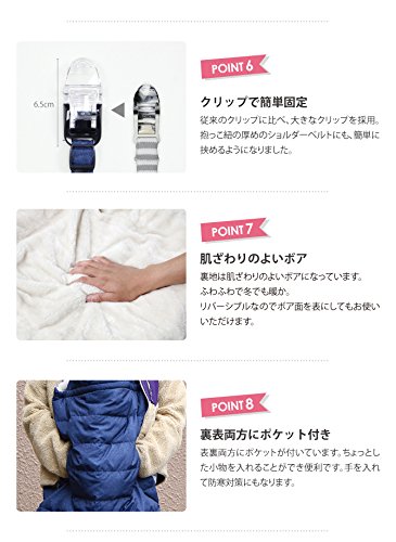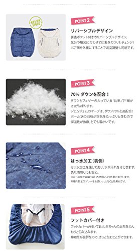・ジェムジェムオリジナルクリップホール付き ・リバーシブルデザイン ・ダウン70%高配合であたたか ・撥水加工(表側) ・フットカバー付き ・大きなクリップで簡単固定 ・肌ざわりの良いボア ・裏表両方にポケット付き ・4way(抱っこ、おんぶ、おくるみ、ベビーカーカバー)