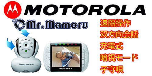 遠隔操作でカメラの角度調節可能(上下120°左右270°)、双方向通話可能、無線150mまで可能、ナイトビジョン3mまで有効、1台のモニターにつき3台まで増設可能、子守唄メロディー付き 赤ちゃんだけでなく、介護、ペットにもお使いいただけます。2階の赤ちゃんを寝かせているベッドにカメラを置き、1階で赤ちゃんの様子をモニターで見ながらお料理を作るなんて使い方にぴったりです。 ☆ご注意下さい MBP36のご購入を検討頂いている方 今般、ネットを中心に、モトローラMBP36の平行輸入品が多数販売されています。 平行輸入品は、日本国内電波法の認可を取得しておらず、違法モデルです。 ご購入後、日本代理店での修理対応は不可能となりますのでご注意下さい。 尚、海外平行輸入品をご使用の場合、国内正規品の増設子機は接続する事が出来ませんので、ご注意下さい。