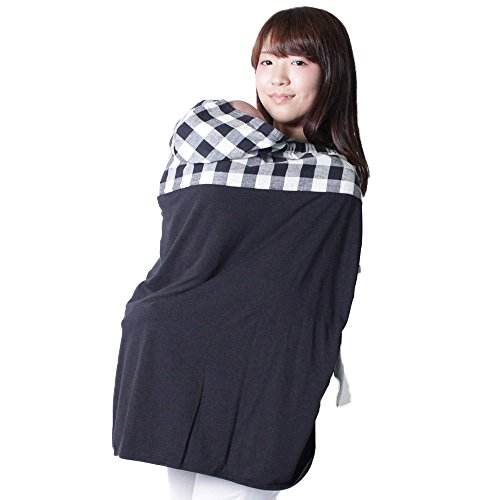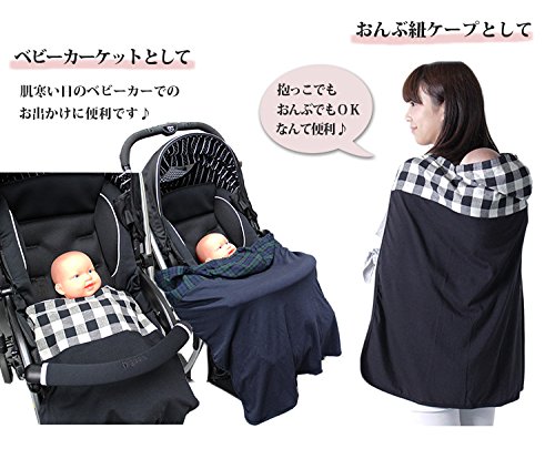 抱っこ紐ケープ おんぶ紐ケープ 授乳ケープ ブランケット 多機能 抱っこ おんぶ (ブラック×ホワイト)