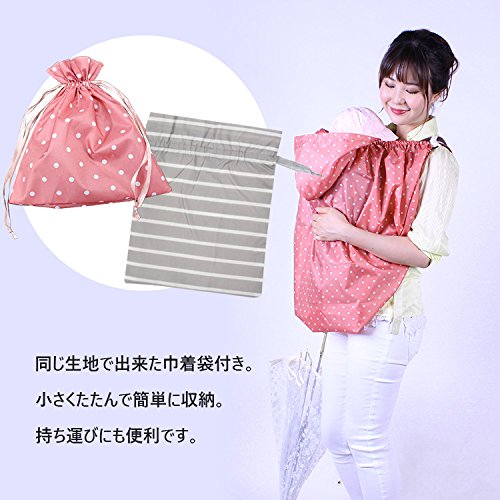 インカバー レインママコート ママ レインコート 抱っこしたまま着られる 雨 梅雨 赤ちゃん 妊娠期 自転車 抱っこ紐 急な雨も安心 収納袋付き 巾着袋 便利 可愛い (グレーボーダー)