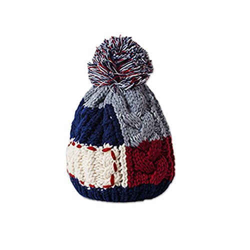 キッズニット帽子 キッズ ニット帽 かわいい 子ども 帽子 カラフル 4color ざっくり編み 可愛い プレゼント ベビー キャップ 冬 防寒 暖かい ボアファー (ネイビー)